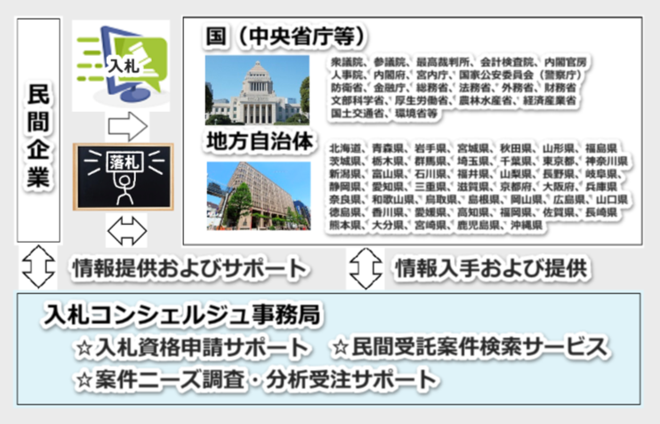 私たちは、中小企業や個人事業主の皆さまが国や自治体の情報を活用して自社PRをしたい、売上を伸ばしたい企業様を応援しています。